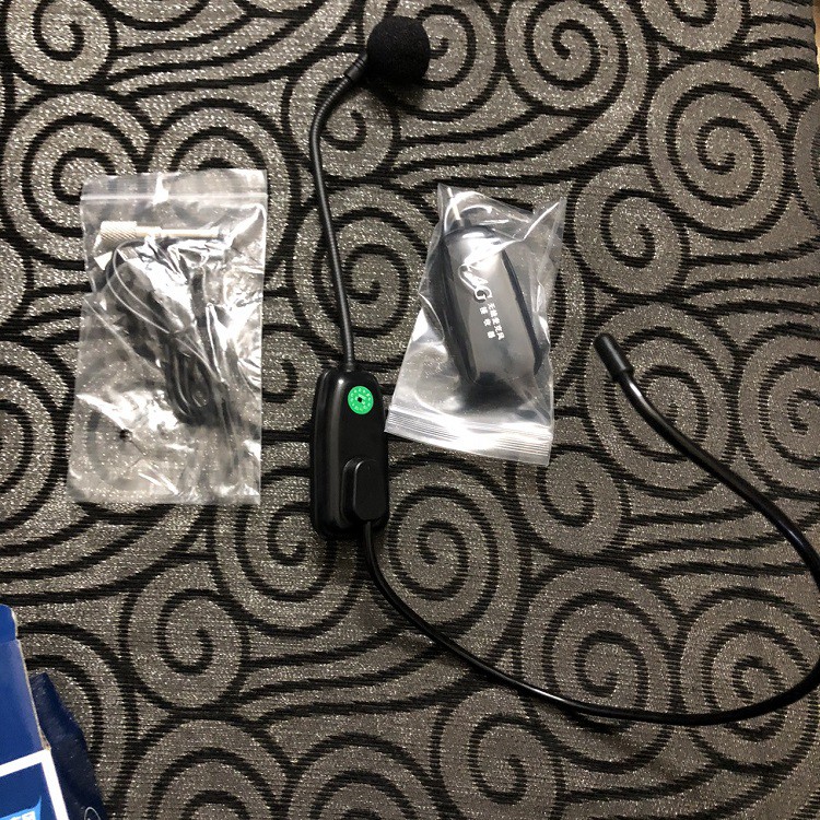 – Bộ sản phẩm gồm: 1 thanh micro, 1 thanh đeo, 1 mút lọc micro, 1 cục cắm 2.4GHz, 1 thiết bị chuyển đổi 3.5mm sang 6.5mm