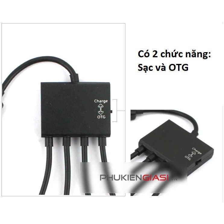Micro USB HUB OTG 4 trong 1 có hai chức năng: sạc và OTG.