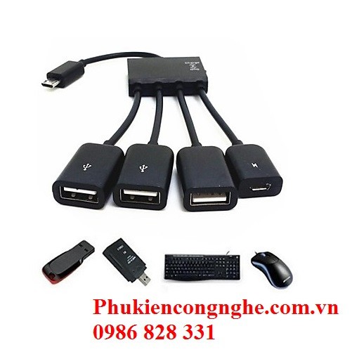MICRO USB HUB OTG 4 IN 1 KẾT NỐI ĐIỆN THOẠI, TABLE ANDROID