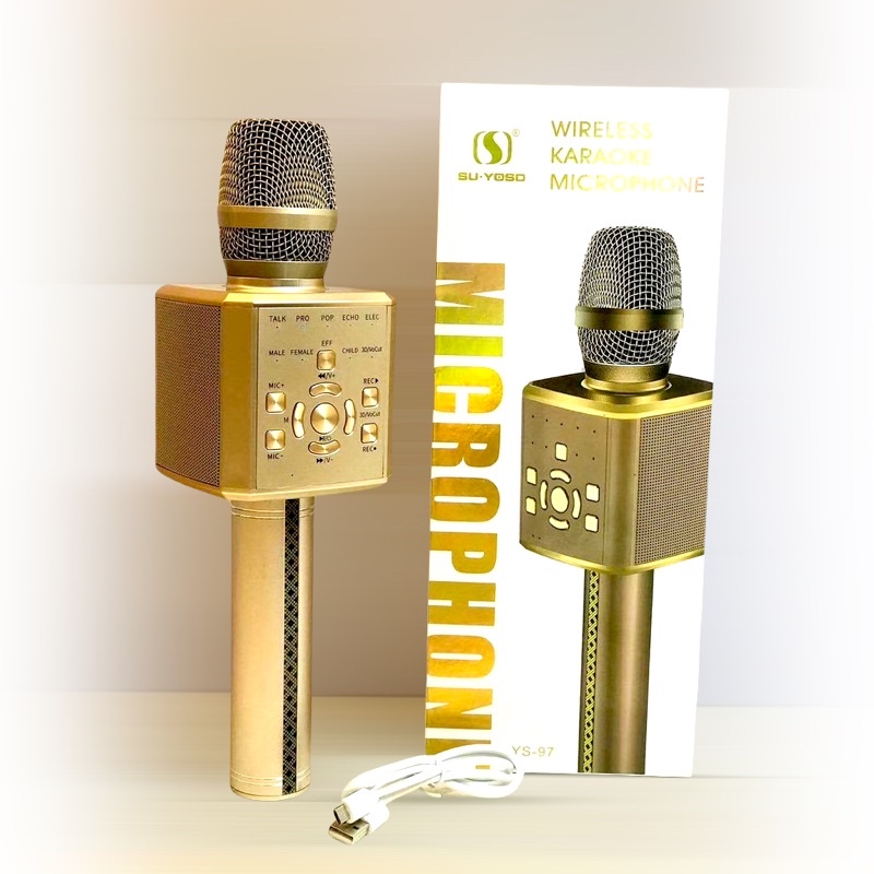 Giới thiệu " Micro Karaoke Bluetooth SU-YOSD YS-97 cao cấp "Đây là phiên bản mới nhất của dòng Micro Karaoke Bluetooth SU-YOSD YS với công suất loa 7W được thiết kế to hơn rất nhiều so với các dòng YS-90, YS-91, .... trước đây (công suất 5W). Ngoài ra YS-97 còn có thêm một số nút chức năng như vỗ tay, giả giọng ... hỗ trợ cho việc ca hát của bạn trở nên tuyệt vời hơn.