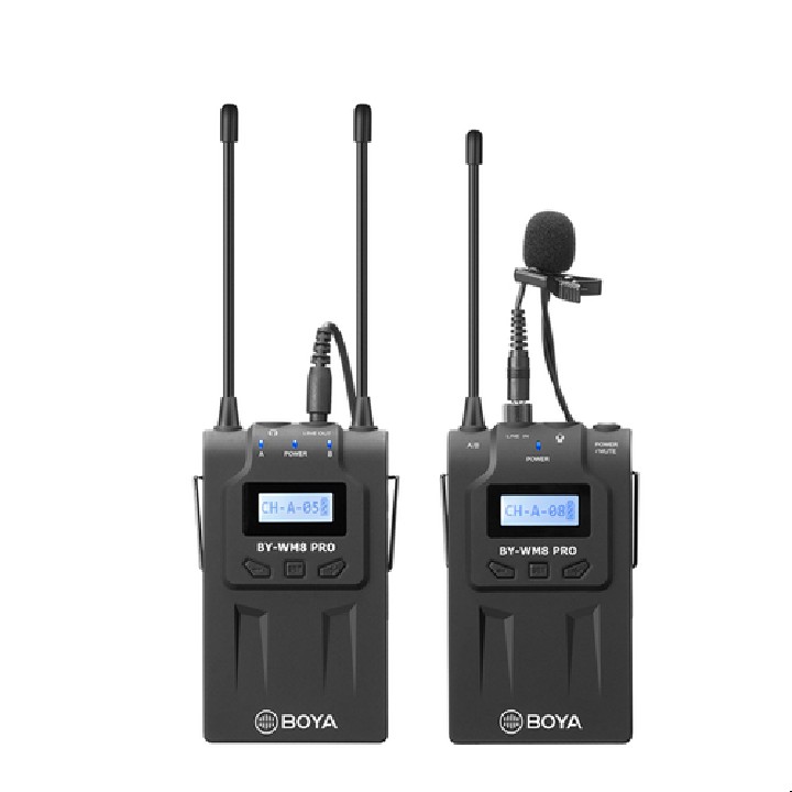 Microphone không dây Boya BY-WM8 Pro K1 được thiết kế dành cho các dòng máy ảnh, máy quay chuyên dụng. Sản phẩm sử dụng 48 kênh sóng UHF nằm trong dải tần riêng, đảm bảo chống nhiễu và ổn định tín hiệu. Người dùng có thể sử dụng micro Boya BY-WM8 trong 6 tiếng liên tục với 2 pin tiêu AA bền bỉ.MỘT SỐ THÔNG TIN MICROPHONE KHÔNG DÂY Boya BY-WM8 Pro K1