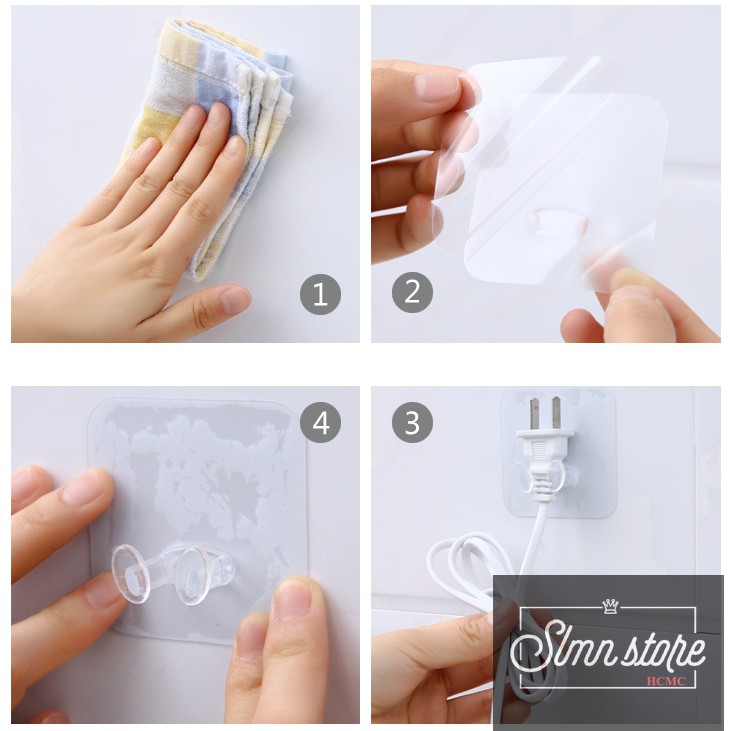 Miếng dán tường trong kẹp giữ đầu dây điện,treo vật dụng nhà bếp, phòng tắm siêu gọn gàng,tiện lợi.SD1_TreoDDien-Trong