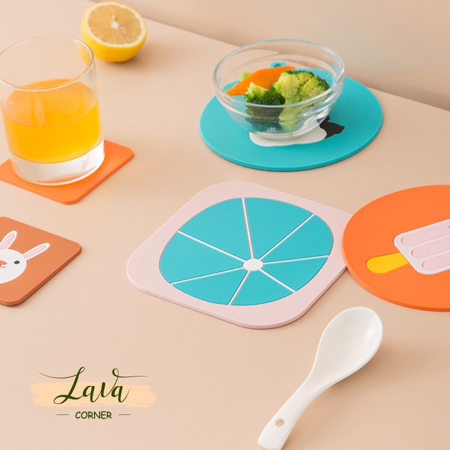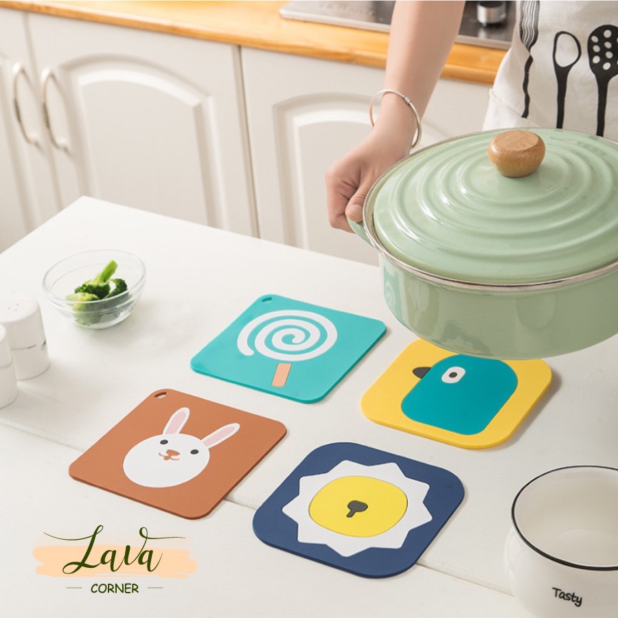 Miếng Lót Nồi Cách Nhiệt Silicon, Chống Thấm Có Hoạ Tiết Dễ Thương