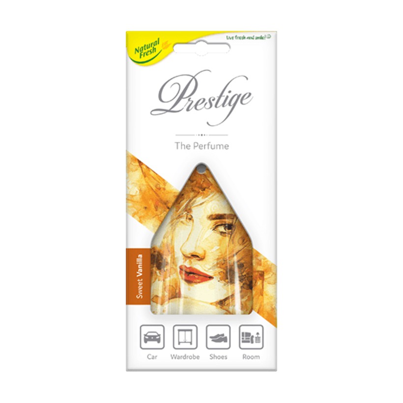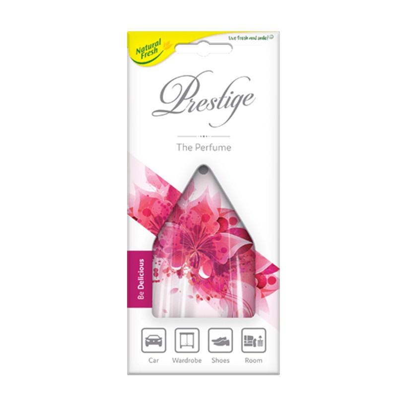 Miếng Thơm Tinh Dầu Thiên Nhiên Nụ Hoa Treo Ô Tô, Tủ Quần Áo Natural Fresh Prestige 20gMiếng Thơm Tinh Dầu Thiên Nhiên Nụ Hoa Treo Ô Tô, Tủ Quần Áo Natural Fresh Prestige là giải pháp hương thơm được nhiều người biết đến cho xe và tủ quần áo cũng như nhà vệ sinh. Sản xuất theo công nghệ nano cho phép thời gian tỏa hương lâu hơn. Mùi thơm từng bước lan tỏa tạo sự dễ chịu cho người sử dụng.