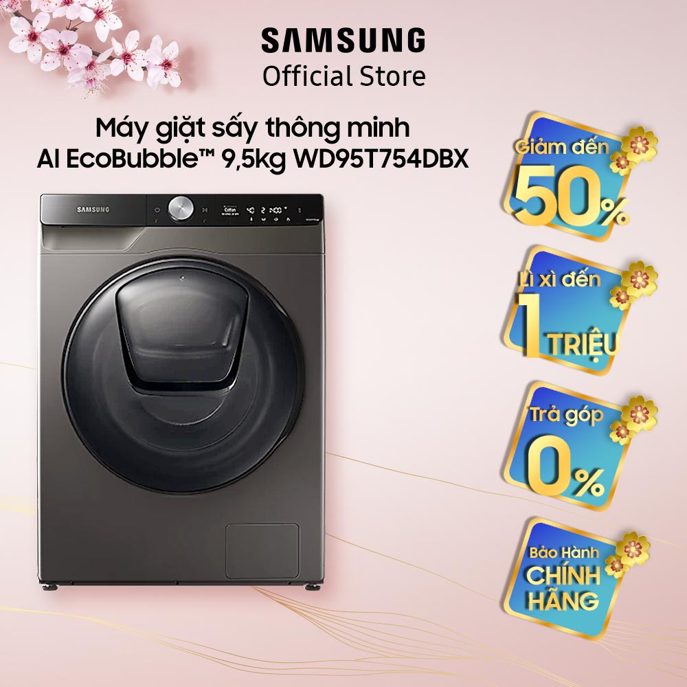 Thiết Bị Điện Gia Dụng > Thiết bị điện gia dụng lớn > Máy giặt & Máy sấy > Máy giặt || [Mã ELSS500 giảm 10% đơn 500K] Miễn phí công lắp đặt_Máy giặt sấy thông minh Samsung AI EcoBubble 9,5kg (WD95T754DBX)Còn hàng