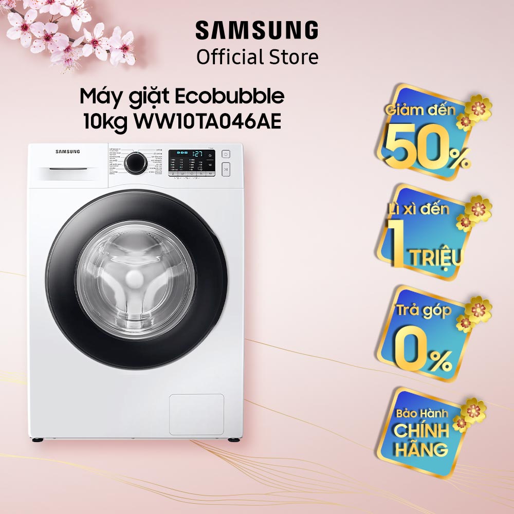 Thiết Bị Điện Gia Dụng > Thiết bị điện gia dụng lớn > Máy giặt & Máy sấy > Máy giặt || [Mã ELSS500 giảm 10% đơn 500K] Miễn phí công lắp đặt_Máy giặt Samsung Ecobubble 10kg (WW10TA046AE))Còn hàng