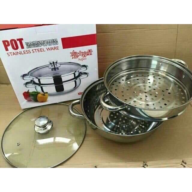 Nhà cửa & Đời sống > Dụng cụ nhà bếp > Nồi || [Miễn Phí Ship] bộ nồi hấp inox 2 tầng kèm xửng hấp inox đáy từ loại tốtCòn hàng