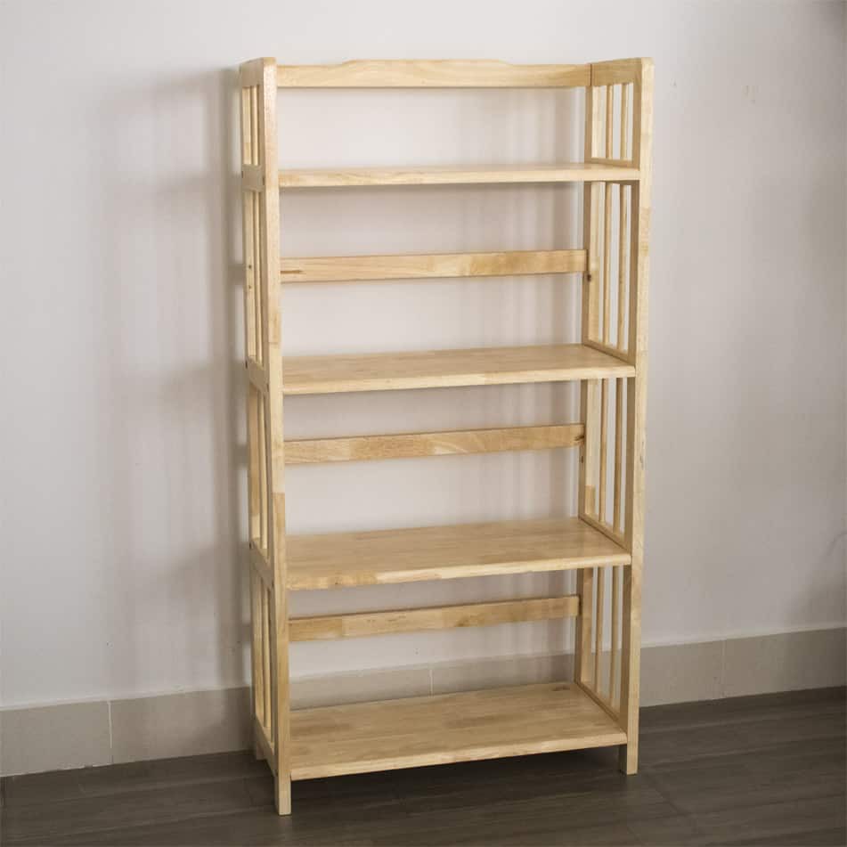 Giá sách gỗ cao su tự nhiên là sản phẩm được gia công chắc chắn , chịu lực cao đến 35kg.