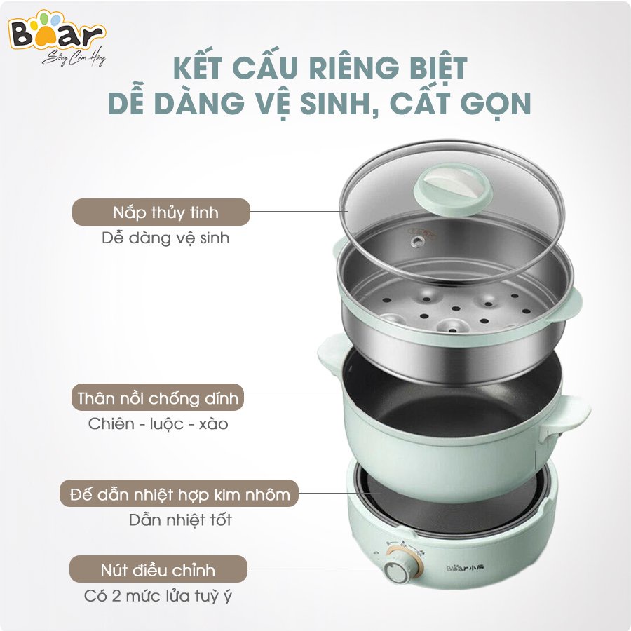 Giới thiệu [Miễn phí ship] Nồi Điện Đa Năng Bear MC-B25V1 (2.5L) (Kèm Lồng Hấp)