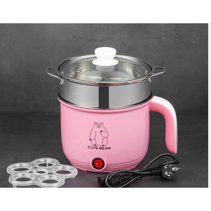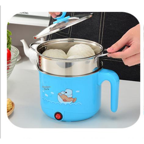 Giới thiệu [MIỄN PHÍ VẬN CHUYỂN] Ca Nấu Mì Đa Năng Có Tay Cầm 1,8L - Nồi Lẩu Điện Mini Kèm Giá Hấp INOX + 1 Khay Luộc Trứng