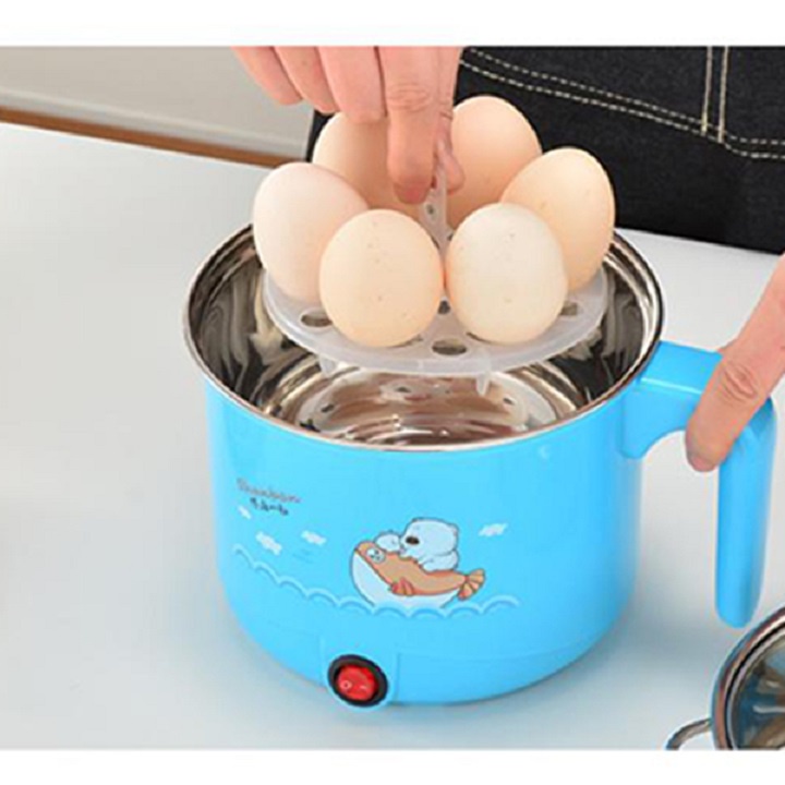 [MIỄN PHÍ VẬN CHUYỂN] Ca Nấu Mì Đa Năng Có Tay Cầm 1,8L - Nồi Lẩu Điện Mini Kèm Giá Hấp INOX + 1 Khay Luộc Trứng