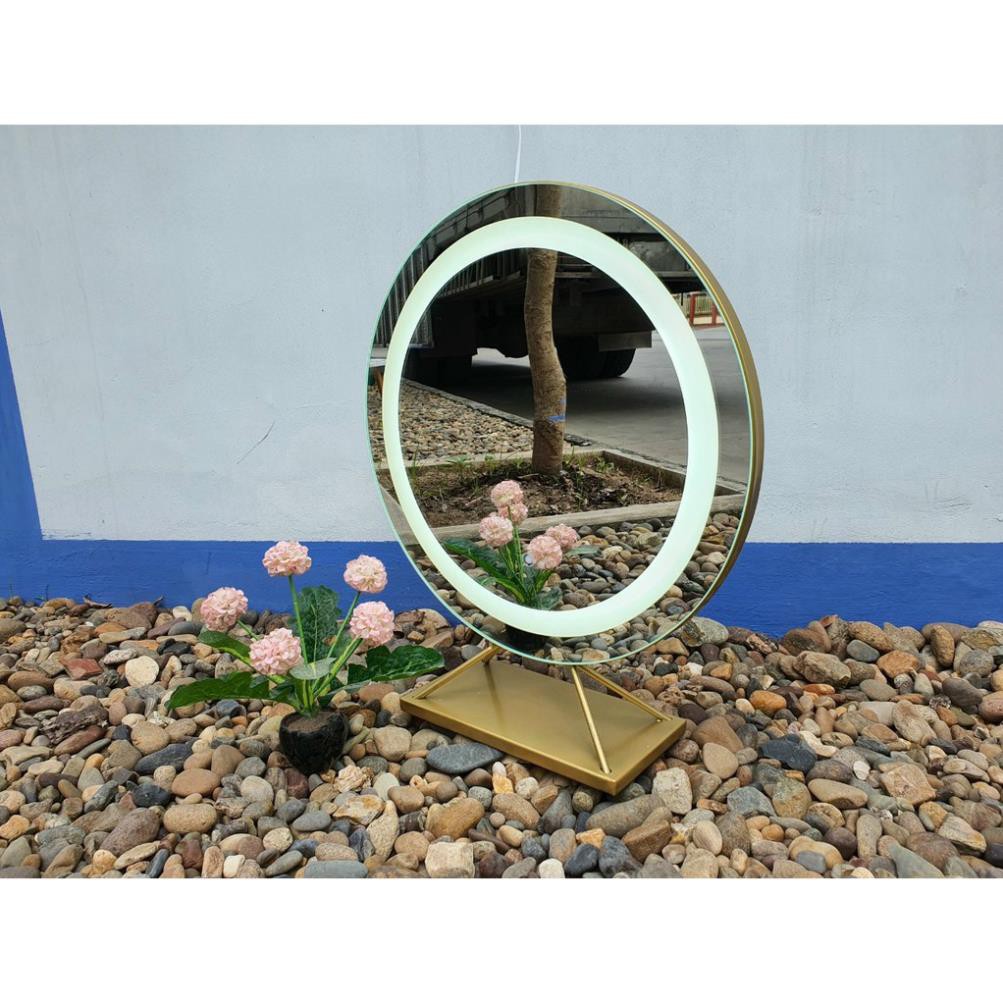 Gương trang điểm để bàn có đèn led được thiết kế với nhiều mẫu mã đa dạng khác nhauKhung gương được làm bằng dòng kim loại cao cấp chống gỉ như inox, thép, bạc hay bằng da cao cấp. Đa số khung gương có thiết kế đường tròn, tạo cảm giác mềm mại dịu dàng như cá tính vốn có của phái đẹp.