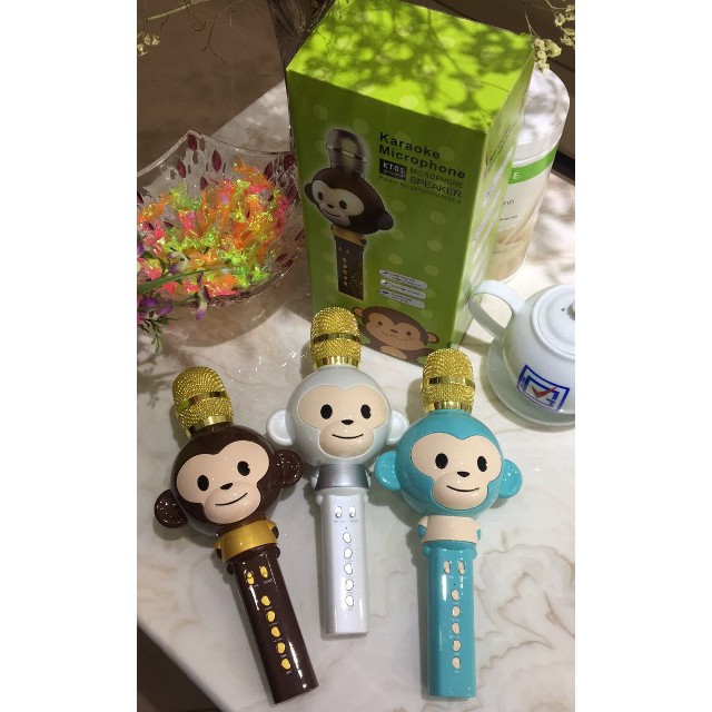 🎤🎤🎤 Mic Karaoke kèm Loa Bluetooth "KT01"Hình chú khỉ ngộ nghĩnh nhiều màu sắc 🙈🙊🙉
