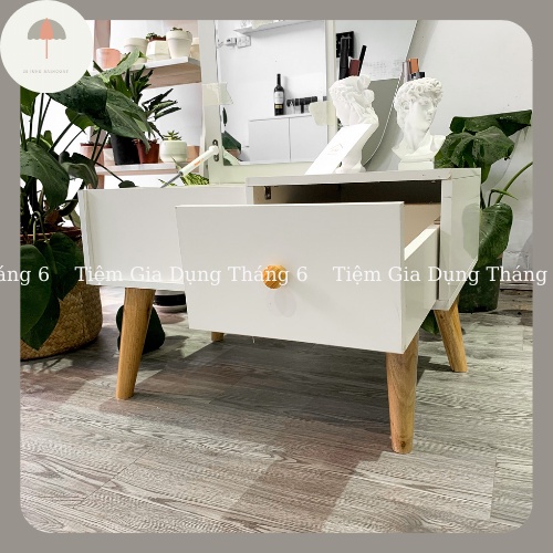- Chất liệu: MDF cao cấp - Chân gỗ cao su sơn PU
