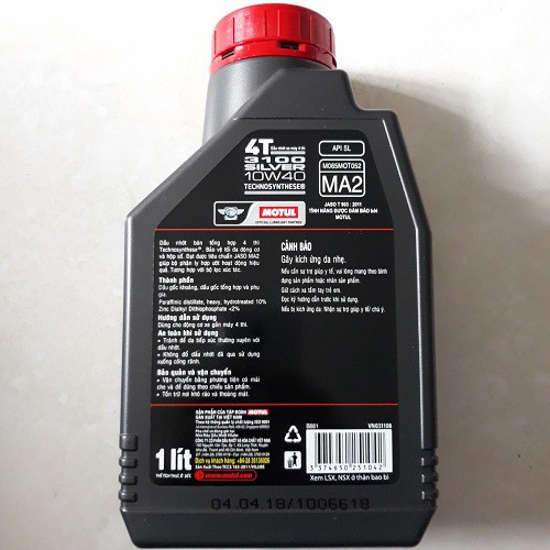 Tiêu chuẩn cấp nhớt của Motul 3100 Silver là API SL, JASO MA2, với độ nhớt 10W40, có thể nói là phù hợp hoàn toàn với các loại 4 thì phổ biến nhất hiện nay trên đường phố Việt Nam. Khi bạn đã chọn nhớt Motul 3100 Silver, bạn không còn lo ngại về việc ảnh hưởng đến động cơ xe, bởi đơn giản đây là loại nhớt có cấp độ nhớt phổ thông nhất, tiện dụng nhất