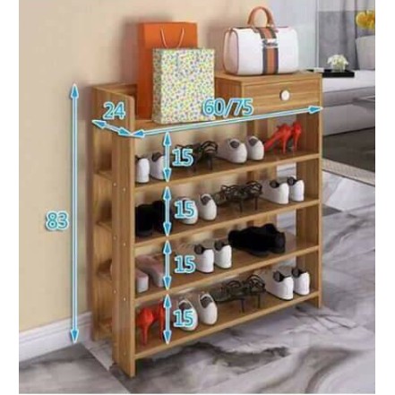 ✅ Kệ giày gỗ được thiết kế 5 tầng để giày dép và 1 ngăn kéo tủ đồ cá nhận như : xi đánh giày, vật dụng khác....