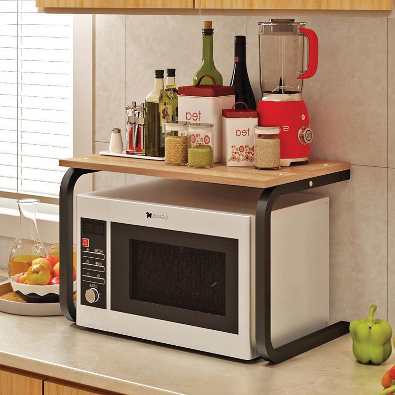 - Kệ để lò vi sóng 2 tầng đế gỗ có thiết kế đơn giản nhưng rất thoáng có 2 tầng giúp để lò vi sóng một cách gọn gàng, tiết kiệm không gian nhà bếp của gia đình bạn, các gia vị, dụng cụ nhà bếp cũng được xếp ngăn nắp. Kiểu dáng trang nhã phù hợp với hầu hết các kiểu nội thất