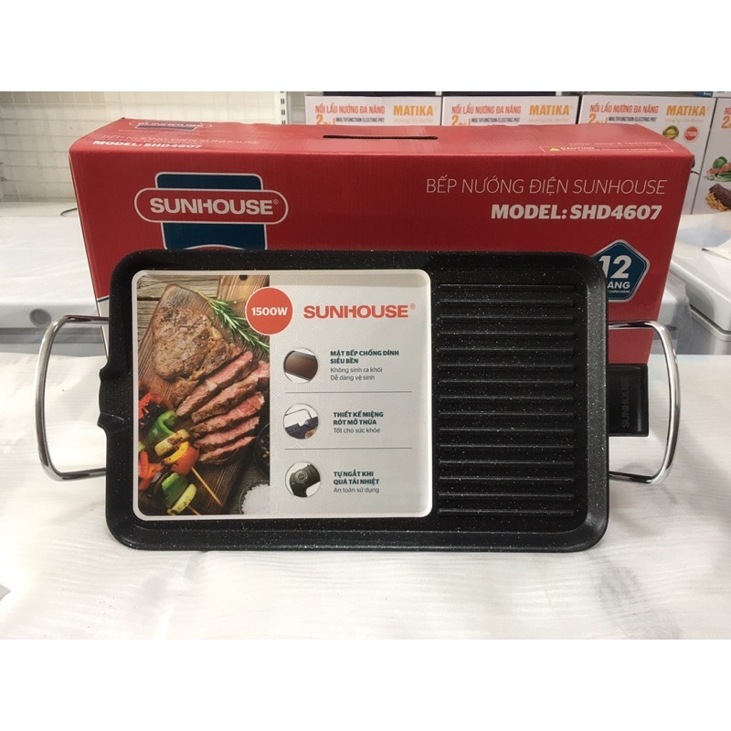 Thiết Bị Điện Gia Dụng > Đồ gia dụng nhà bếp > Lò nướng || [Mã 44ELSALE2 giảm 7% đơn 300K] (Miễn ship)Lỗi 1 đổi 1- Bếp nướng điện không khói SUNHOUSE 4607 Hàng chính HãngCòn hàng