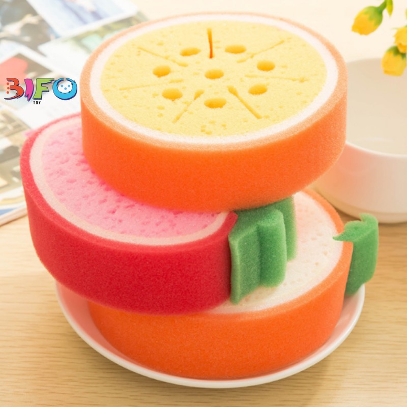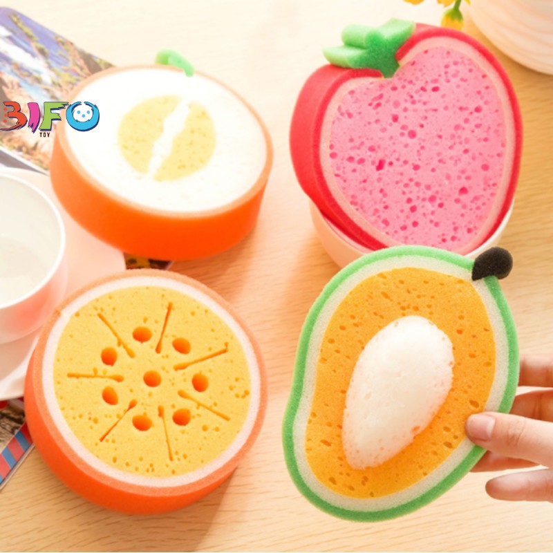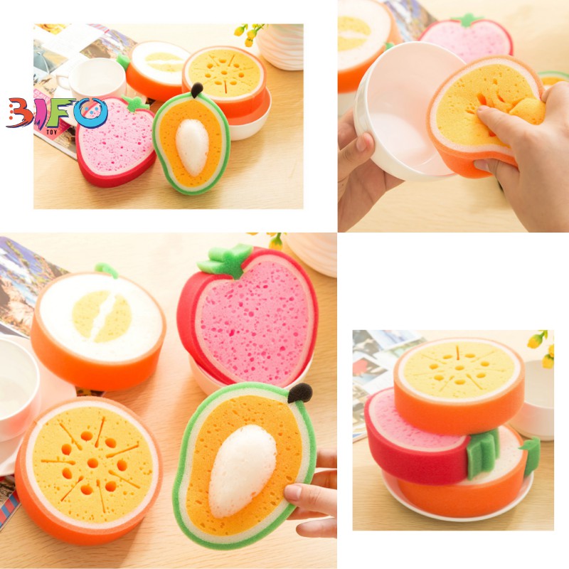 Miếng bọt biển rửa đồ dùng nhà bếp chất liệu dày hình trái cây dễ thương tiện dụng