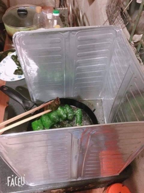 Chắn dầu, mỡ bếp ga, tiện dụng cho mọi căn bếp,Được làm từ hợp kim nhôm dạng lá mỏng.. Ngoài việc chắn dầu mỡ bắn còn có tác dụng chắn gió giúp đun nấu nhanh hơn.