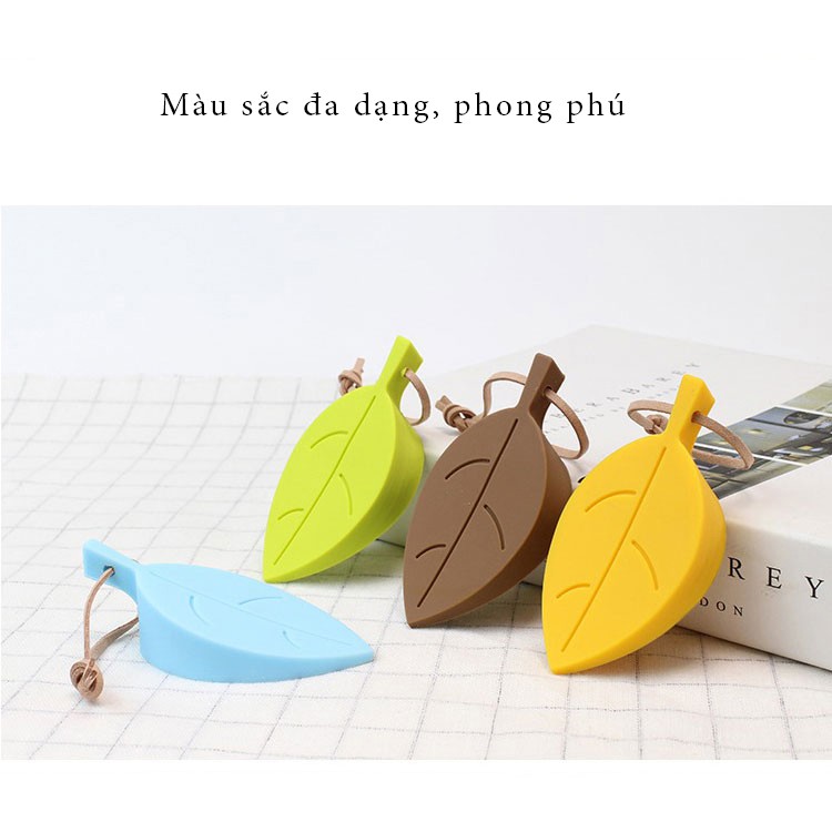 - Thiết kế hình chiếc lá, có dây treo.