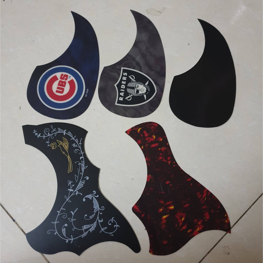 Miếng dán chống xước đàn guitar hay còn được biết với tên Pickguard là một trong những phụ kiện gắn liền với cây guitar ngoài việc dùng để trang trí tô thêm vẻ đẹp của cây guitar nó còn mang một nhiệm vụ cực kỳ quan trọng là chống trầy xước cho thân đàn mà vùng bị ảnh hưởng trực tiếp là phía dưới miệng đàn. Các bạn chưa dán pickguard thử nhìn xem phần gỗ ở vị trí này nhè, đánh lâu ngày sẽ có những chấm thâm li ti do dấu tay gây ra, nhất là động tác quạt (strumming) và các kỹ thuật finger (gõ - đập) gây ra. Lâu ngày dày dần và bong sơn thậm chí hư hỏng gỗ phần top của đàn. Tuy nhiên nếu có Pickguard thì gần như đàn của bạn có thêm tấm khiêng bảo vệ vừa để trang trí, tấm lá chắn này lại có giá trị cực thấp nên khi sờn cũ hoặc không thích bạn có thể tháo ra và đổi ngay tấm khác. Như vậy mình đã thỏa sức mà bung xõa trên đàn rồi nhé!==========================