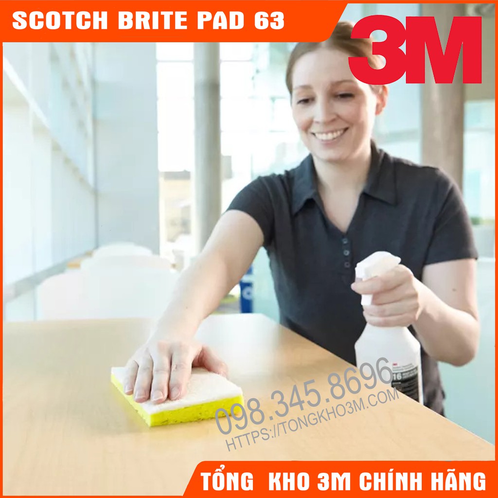Miếng chùi rửa 3M Scotch Brite 63 được thiết kế bọt biển mềm nhẹ, là sự lựa chọn hàng đầu khi bạn muốn vệ sinh những đồ vật dễ xước.