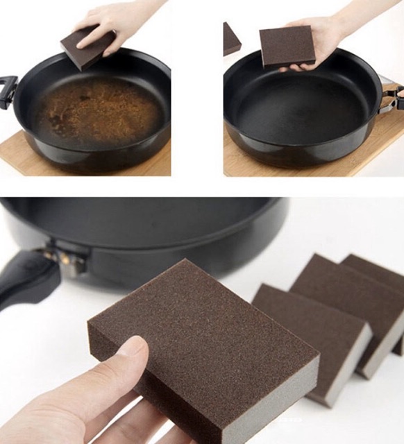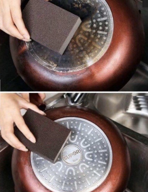 - Ngoài ra miếng cọ có thể làm sạch những vết ố, vết đen do cháy, ngả màu do sử dụng lâu ngày … trên xoong nồi, bếp gas, mặt bàn bếp, đồ gốm sứ hay gạch men …