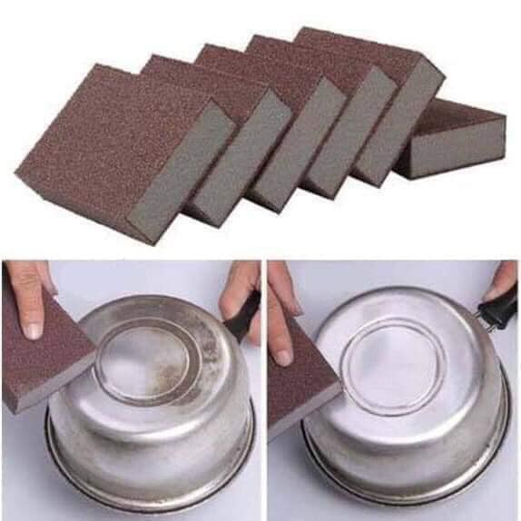 - Làm từ chất liệu mút xốp bọt biển bề mặt nhám nên mỗi khi dùng để chà lên thành hay đáy nối các vết nhọ nồi cháy đen sẽ được đánh bóng lại như mới.