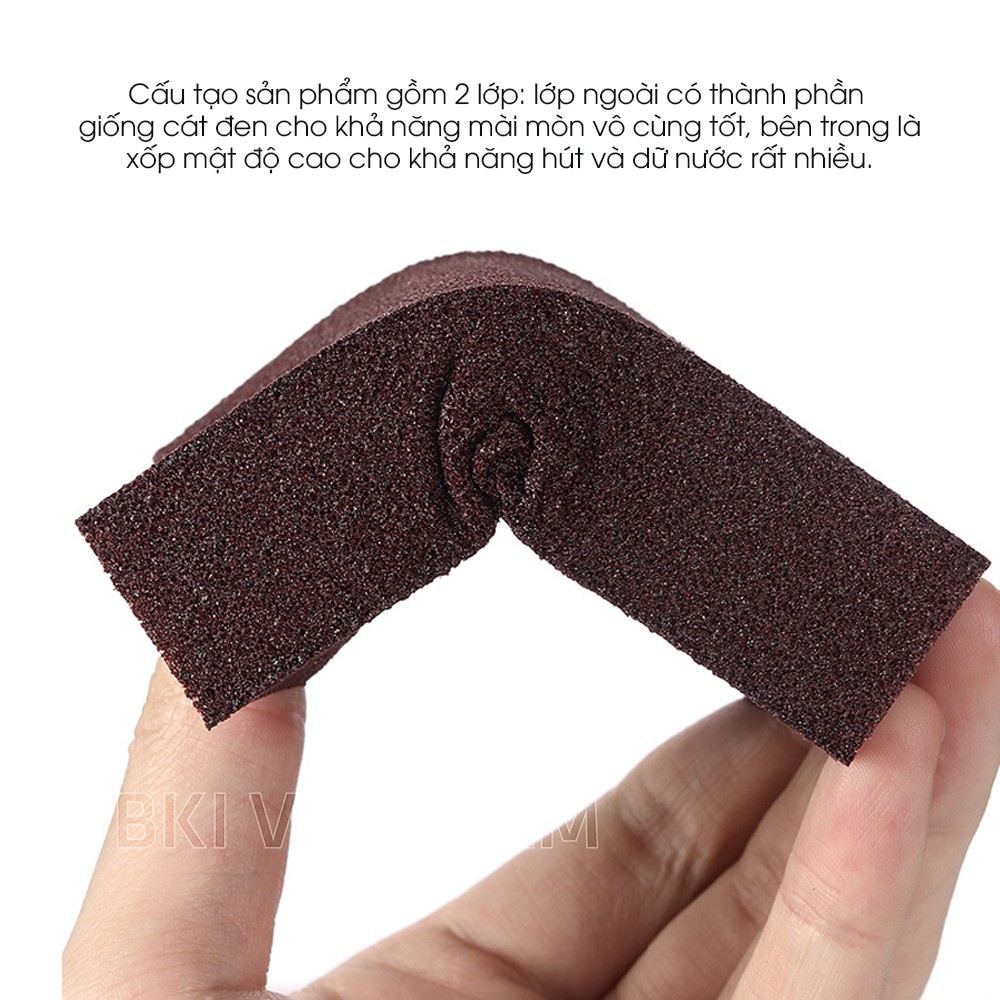 🔷Cấu tạo sản phẩm gồm 2 lớp: lớp ngoài có thành phần giống cát đen cho khả năng mài mòn vô cùng tốt, bên trong là xốp mật độ cao cho khả năng hút và dữ nước rất nhiều.