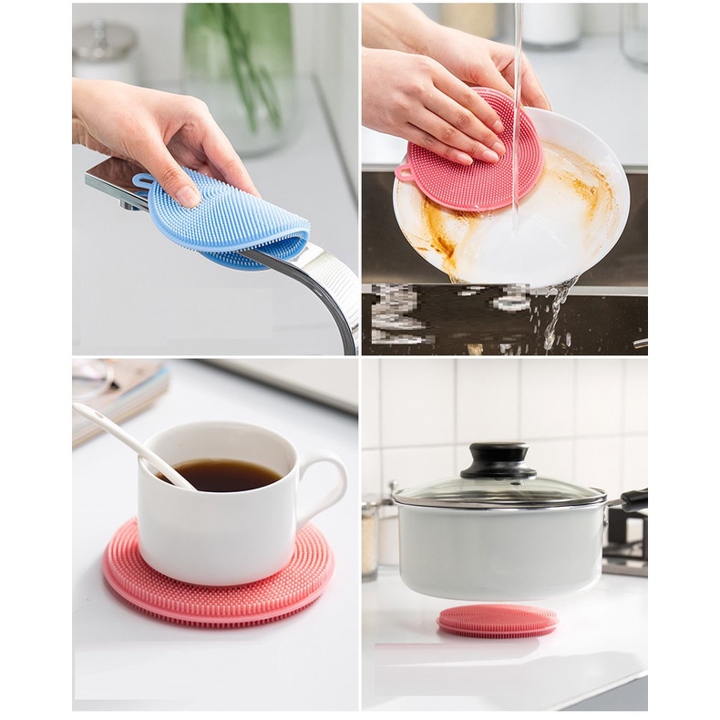 Ngoài ra Miếng rửa bát silicon còn sử dụng để lau chùi bếp, lót nồi, làm thay thế găng tay nhấc xoong nồi nóng nữa.