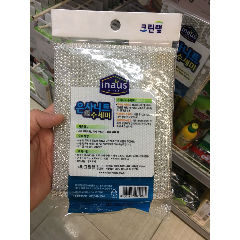 Miếng cọ rửa chén, bát, xoong nồi sợi bạc xuất xứ Hàn QuốcSản phẩm nhập khẩu từ Hàn Quốc