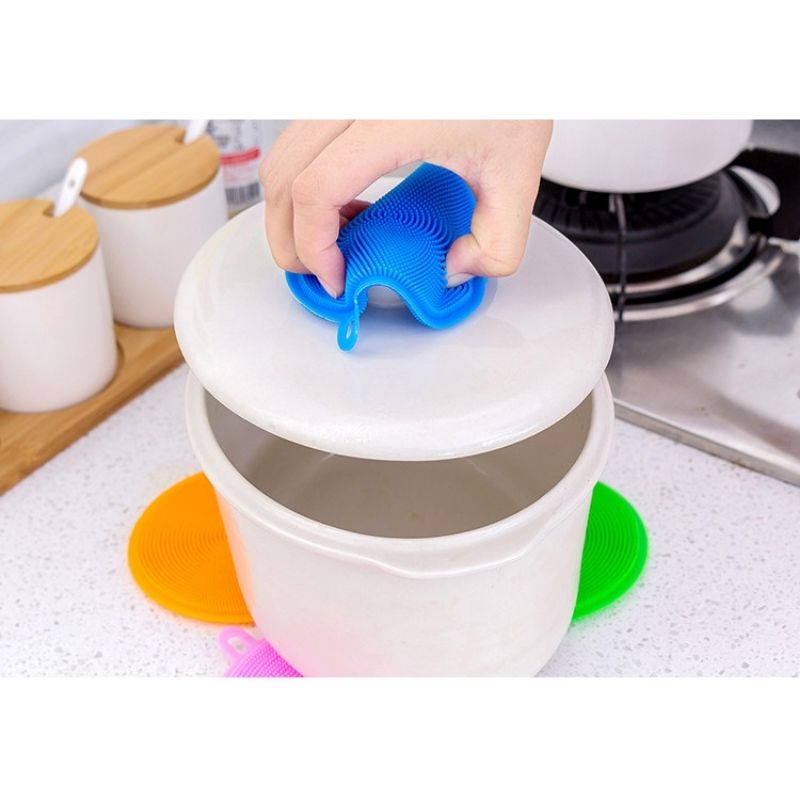 Nhà cửa & Đời sống > Dụng cụ chăm sóc nhà cửa > Miếng bọt biển, miếng chà vệ sinh || Miếng cọ rửa chén đa năng bằng Silicon siêu sạch, có thể dùng làm tấm lót nồi chống nóng, lót cốc, cọ rửa củ quảCòn hàng