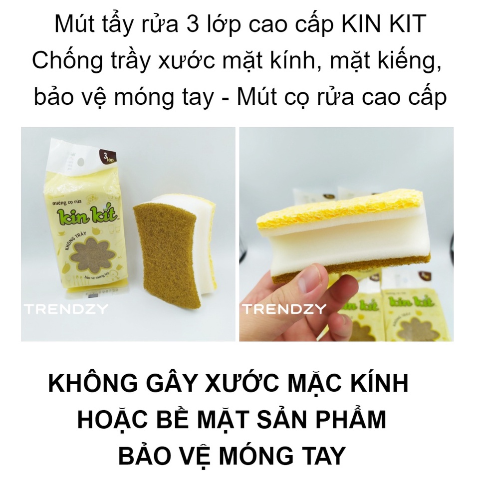 Miếng cọ rửa không trầy đa năng 3 lớp cao cấp Kin Kít - Chống trầy xước mặt kính, mặt kiếng, bảo vệ móng tay