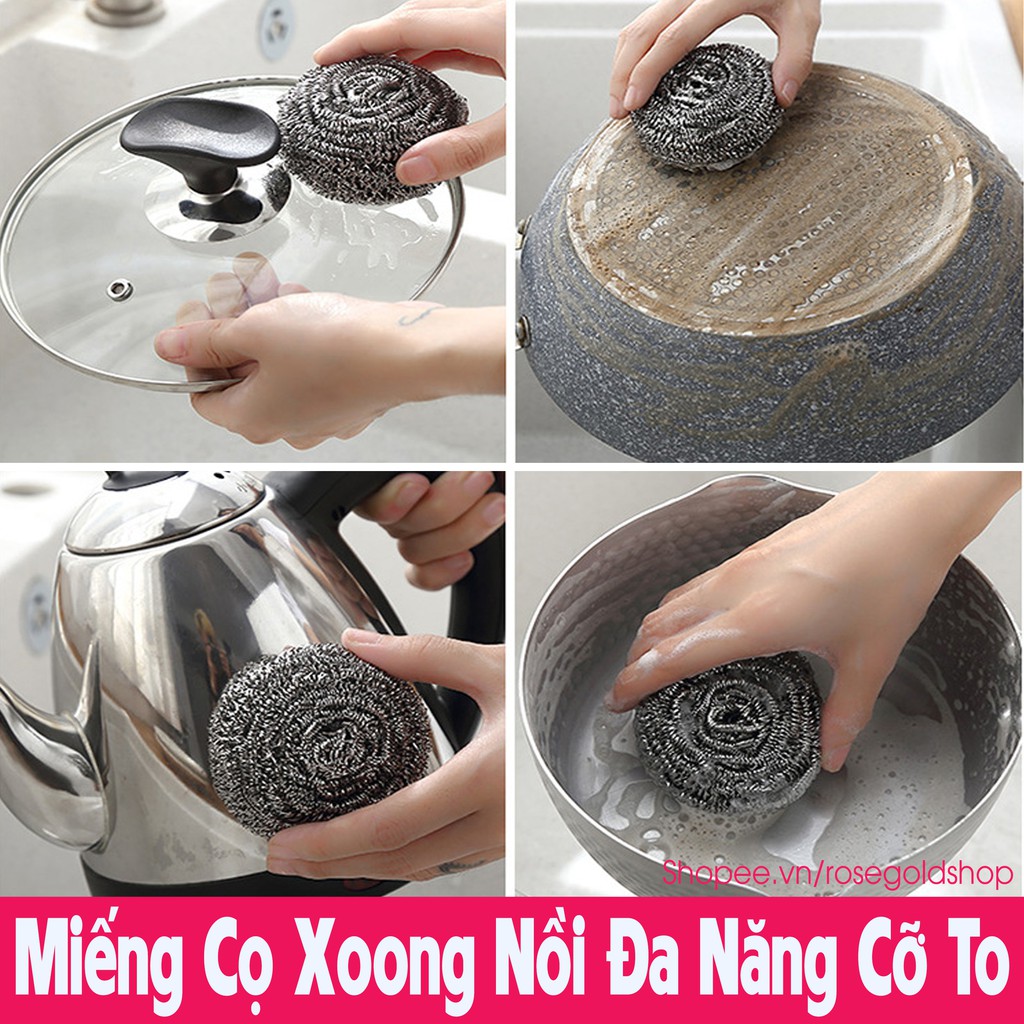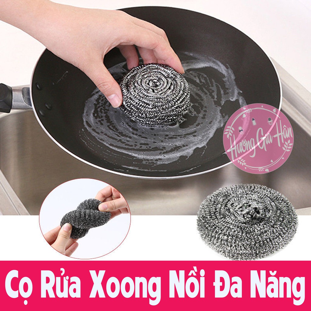 Miếng cọ rửa xoong nồi được làm từ chất liệu men thép. Giúp cọ rửa những vết bẩn cứng đầu trên xoong nồiĐường kính 10cm