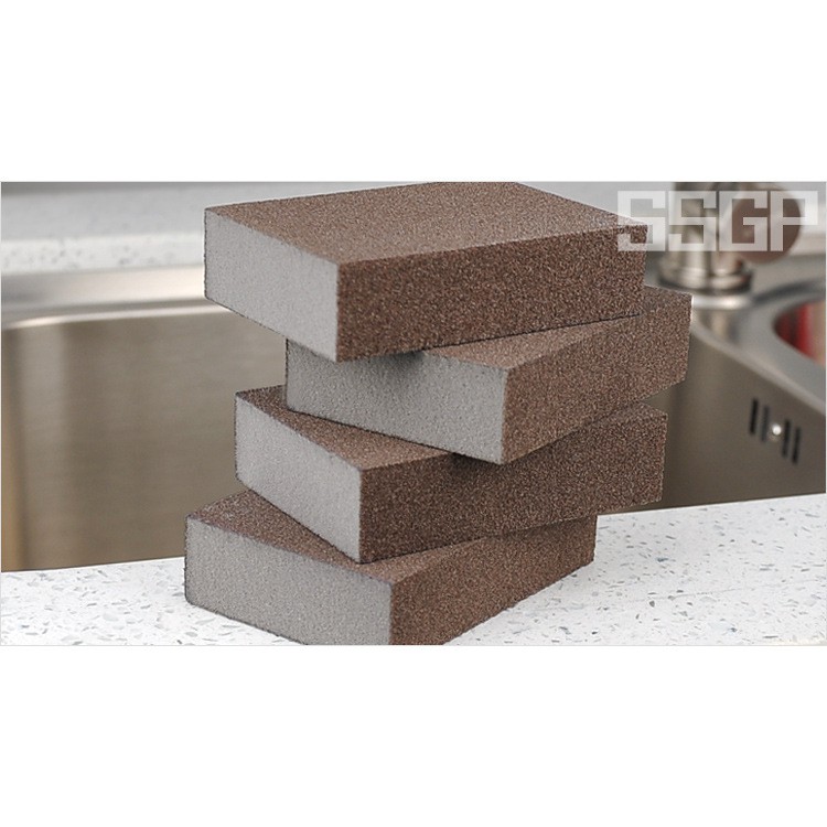 - Cấu tạo sản phẩm gồm 2 lớp: lớp ngoài có thành phần giống cát đen cho khả năng mài mòn vô cùng tốt, bên trong là xốp mật độ cao cho khả năng hút và dữ nước rất nhiều.
