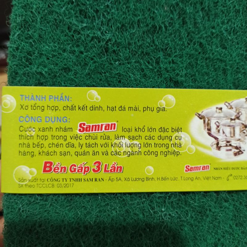 Miếng kép rửa bát xanh được làm từ các sợi cước đặc biệt cùng các hạt mềm mịn, không làm trầy xước các bề mặt mà chúng tiếp xúc, ngay cả bề mặt thủy tinh, sản phẩm có tráng men sứ.- Sản phẩm gồm 1 miếng rất vừa tay cầm, tạo thuận lợi khi sử dụng. - Miếng rửa bát dễ dàng, nhanh chóng lấy đi những vết bẩn cứng đầu (vết cháy khét, vết dính thức ăn, vết ố…) bám dính trên chảo, nồi, bát, chén, đĩa... mà không cần nhiều nước rửa chén nhờ khả năng thấm hút, tạo và giữ bọt tốt. - Miếng kép rửa bát xanh góp phần cải thiện an toàn vệ sinh thực phẩm, thân thiện với môi trường và giúp tiết kiệm thời gian, chi phí cho người nội trợ.