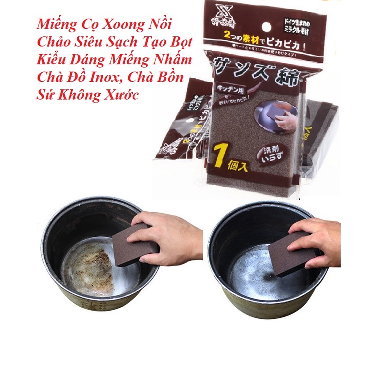 Miếng Cọ Xoong Nồi Chảo Siêu Sạch Tạo Bọt Kiểu Dáng Miếng Nhấm Chà Đồ Inox, Chà Bồn Sứ Không Xước