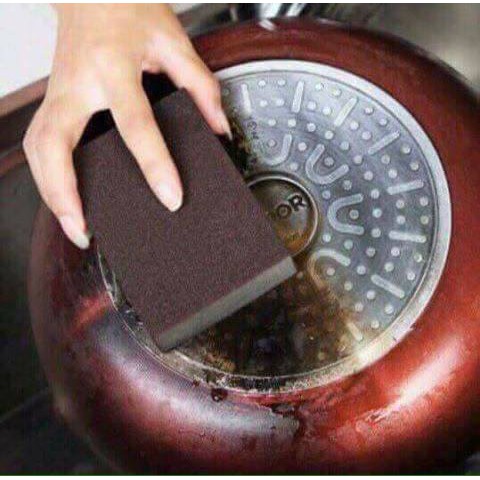 - Sản phẩm giúp việc vệ sinh trở nên thuận tiện và tiết kiệm thời gian. Cọ xoong, nồi, chảo,... giúp bạn làm sạch những vết ố, vết đen do cháy, sử dụng lâu ngày.- Chất liệu: Bọt biển + cát đen