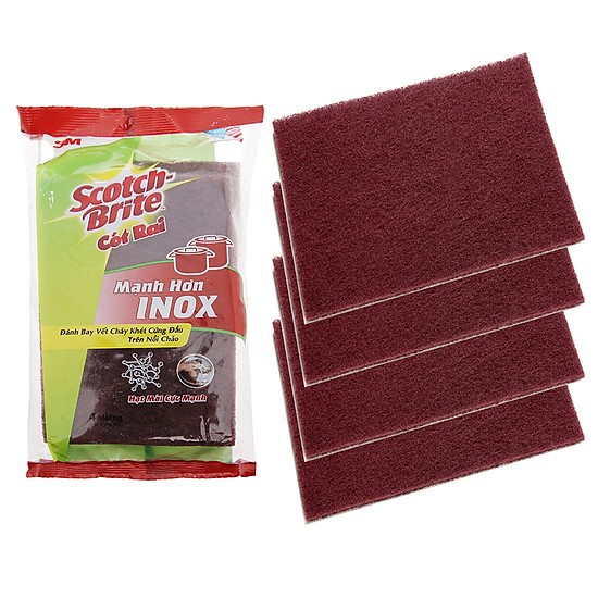 Nhà cửa & Đời sống > Dụng cụ chăm sóc nhà cửa > Miếng bọt biển, miếng chà vệ sinh || [Miếng Cước Cọ Rửa] Mạnh Hơn Inox 3M 7447 - Scotch Brite - Gói 4 Miếng - HIBUVTAUTOCòn hàng