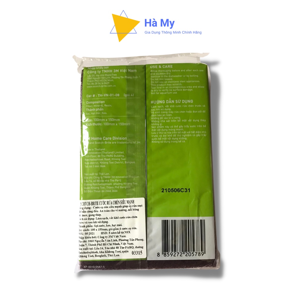 Giới thiệu Miếng Cước Cọ Rửa Siêu Mạnh 3M Scotch Brite Thái Lan 10x15cm-Đánh Tan Mọi Vết Bẩn Cứng Đầu