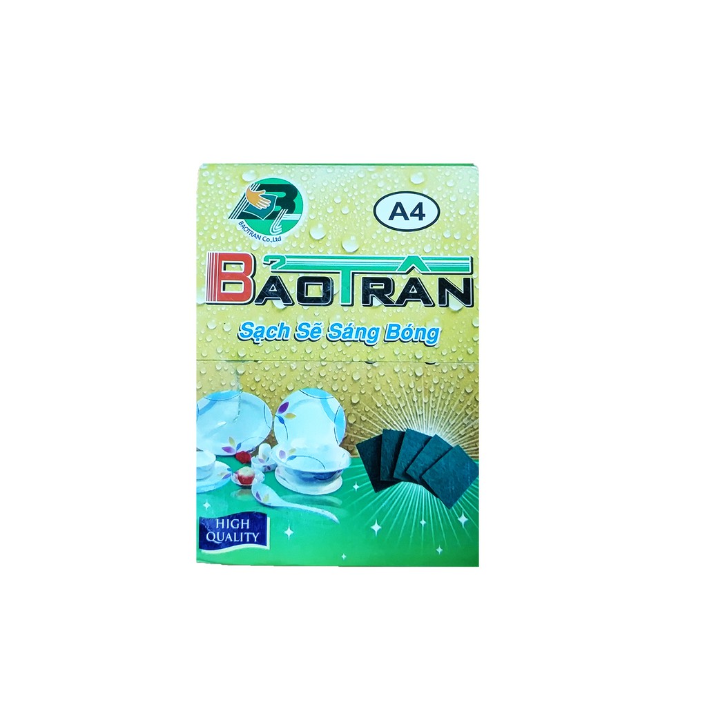 Miếng Cước Rửa Chén Xanh Bảo Trân A4 (10 miếng)Miếng rửa chén nhám xanh Bảo Trân được cấu tạo bởi các sợi cước đặc biệt liên kết chặt với độ nhám, lấy đi mọi vết bẩn (vết dính thức ăn, vết ố…) nhanh và sạch hơn gấp 3 lần so với các sản phẩm thông thường; vừa phù hợp cho việc rửa chén đĩa, vừa giúp bạn lấy sạch vết bẩn cứng đầu trên nồi chảo.