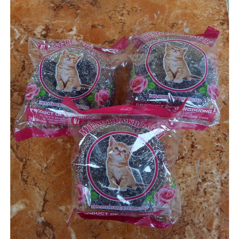 Miếng Cước Sắt Inox Cọ Xoong - Hàng Đẹp, Cầm Đầy Tay- Hiệu Con Mèo