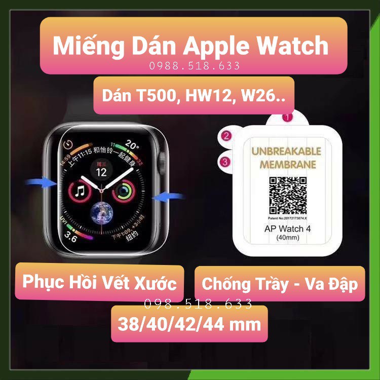 Giới thiệu Miếng Dán Apple Watch Miếng dán dẻo skin PPF tự phục hồi trầy xước size 38 40 42 44mm