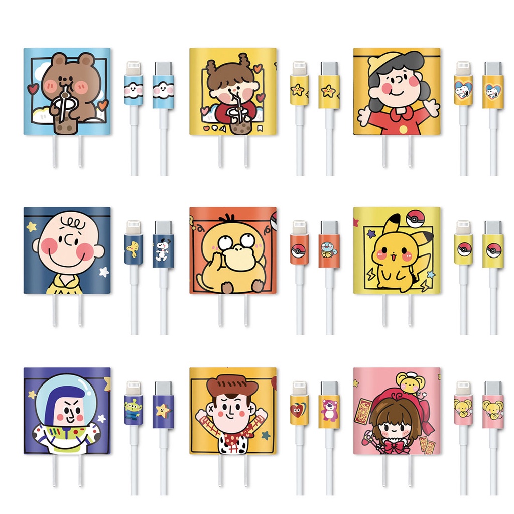 Điện Thoại & Phụ Kiện > Phụ kiện > Cáp, sạc & bộ chuyển đổi > Khác || Miếng dán bảo vệ cục sạc và đầu dây sạc iphone 11Pro 12Pro 11Promax 12Promax cute dễ thương 18w 20wCòn hàng