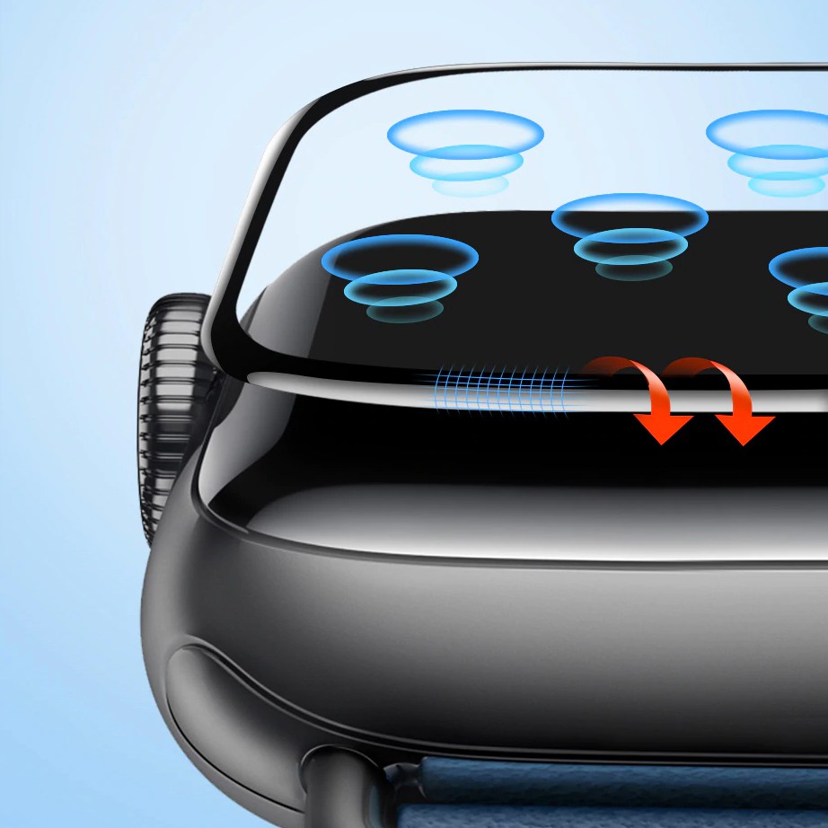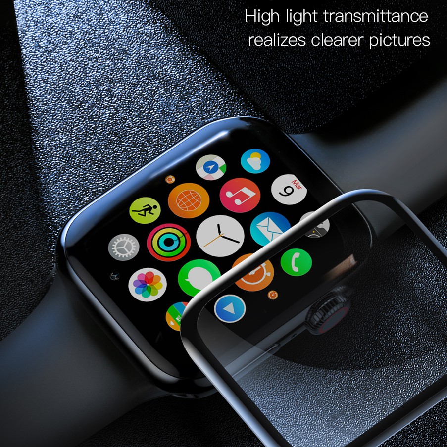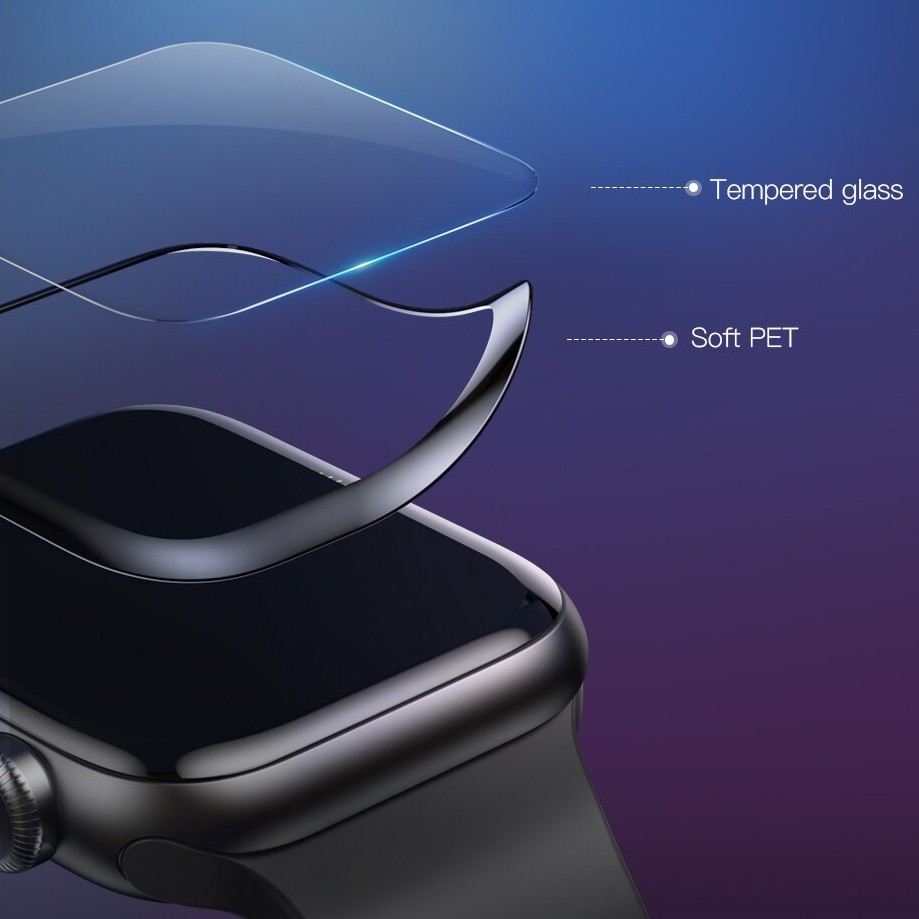 Miếng dán bảo vệ màn hình Apple Watch Size 38/ 40/ 42/ 44mm các đời.- Chất liệu Glass + PET (viền dẻo dán chắc hơn, ôm sát mọi chi tiết, không dễ bị nứt mẻ như các loại kính khác)