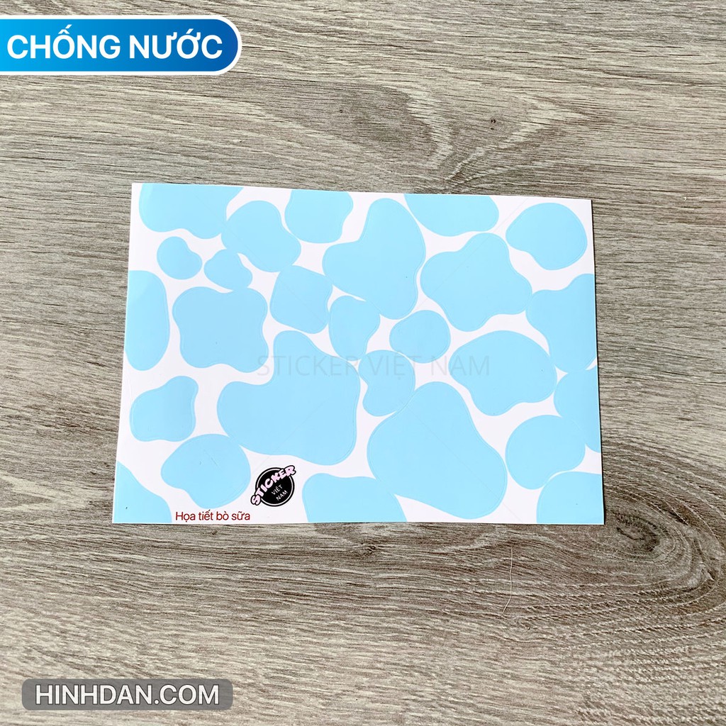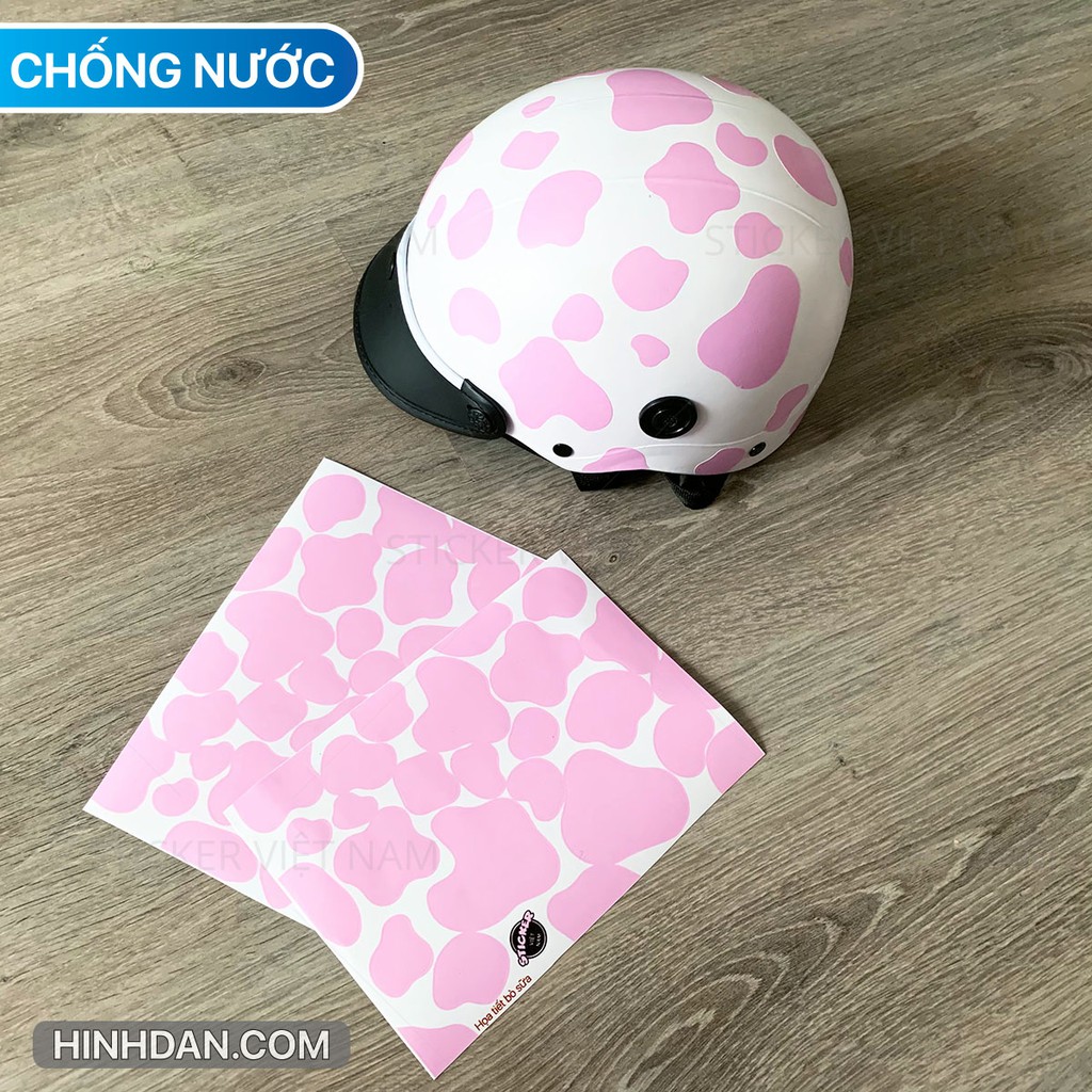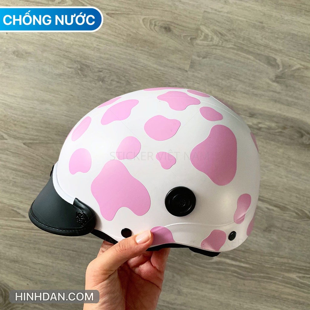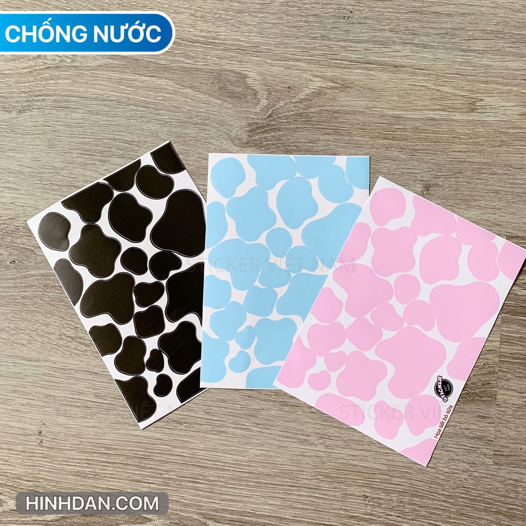 Miếng dán BÒ SỮA 3 màu Xanh - Hồng - Đen chống nước dán nón bảo hiểm, laptop, đàn guitar, xe