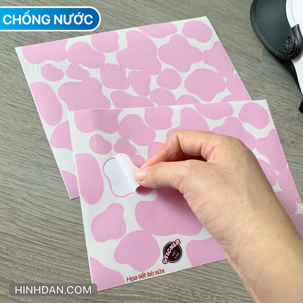 Giới thiệu Miếng dán BÒ SỮA 3 màu Xanh - Hồng - Đen chống nước dán nón bảo hiểm, laptop, đàn guitar, xe