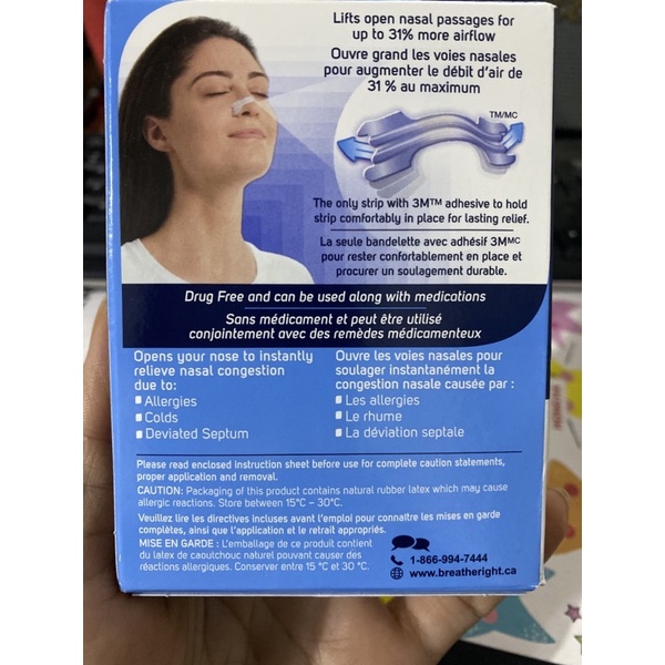 Miếng dán chống ngáy Breath Right dành cho da nhạy cảm và da thường loại- 1 hộp 30- 72 miếng ( sh có bán tách lẻ)