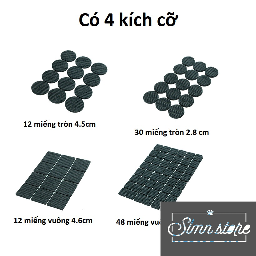 • Sản phẩm có nhiều loại vuông, hình tròn... kích thước khác nhau để bạn sử dụng phù hợp với kích cỡ đồ vật.